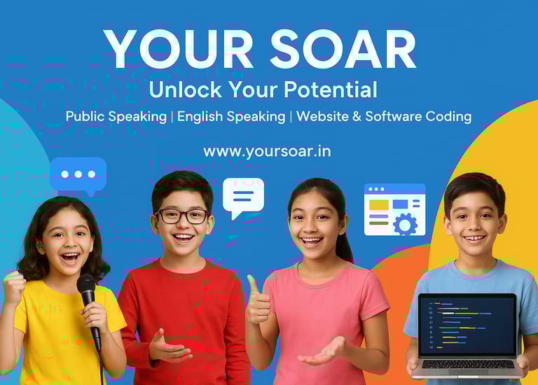 At Your Soar, we specialize in web development and public speaking training, empowering individuals and businesses to elevate their online presence and communication skills with innovative solutions.